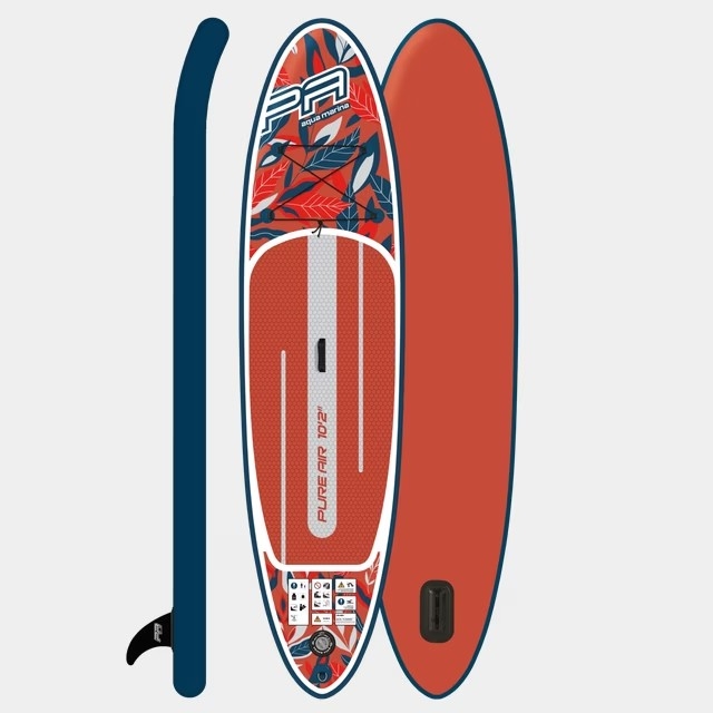 Aqua Marina PURE AIR 10'2'' v oranžovomodrej farbe. Ľahká, stabilná a plne vybavená doska na rekreačné veslovanie. Nosnosť 110 kg