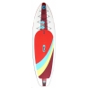 Povrch je opatrený frézovanou EVA penou s diamond grip štruktúrou, ktorá zabezpečuje bezpečný postoj a pohodlie. Tri pevné plutvičky umožňujú jazdu aj v plytkej vode, čo oceníte najmä na riekach alebo v blízkosti brehov. Na palube sa nachádza elastická šnúra pre upevnenie osobných vecí a stredová rukoväť s integrovaným držiakom na fľašu – praktický detail, ktorý ocení každý jazdec.